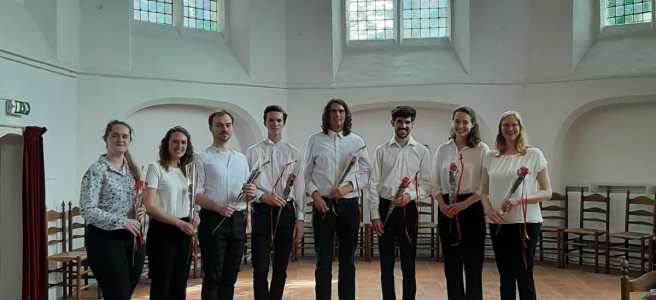 Afgelopen weekend was een repetitieweekend voor ons ensemble. Naast heerlijk repeteren in een platteland-setting, samen koken en gezellig kampvuurtje stoken, hebben wij enkele liedjes opgenomen en ons allereerste optreden als voltallig dubbelkwartet gegeven. Tijdens de zondagdienst van de plaatselijke kerk zongen wij enkele liederen, waaronder “Ave Maris Stella”, “Bogoroditse Djevo” (stiekem onze eigen favoriet) en een lied uit Taizé.