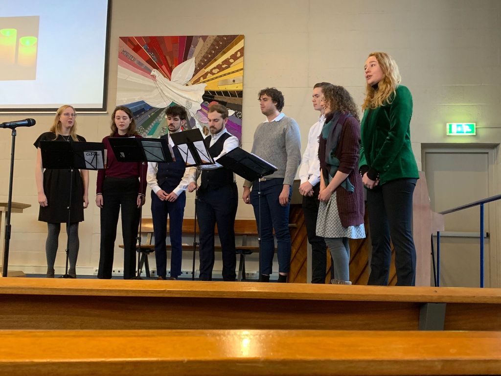 Op zondag 11 december zong OctAves in de adventdienst van de protestantse kerk in Monnickendam. Nu onze sopraan Cecile langdurig in het buitenland is, zong dit keer voor het eerst Tess mee! We zongen Veni Veni Emmanuel, Ubi Caritas en Maria Durch Ein Dornwald Ging. Bij het breken van het brood verzorgden wij de muzikale begeleiding met een liedje uit Taizé onder het pianospel van Micha, een vriend van onze sopraan Haske.