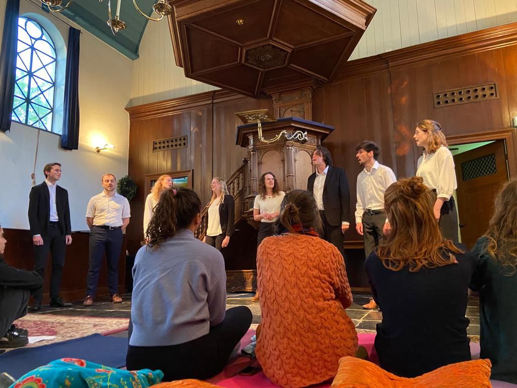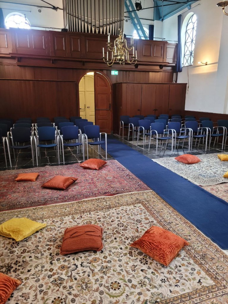 Perzische tapijten en kleurige kussens sierden de vloer van de Schellingwouderkerk. Bezoekers rolden hun yogamatjes uit en maakten zich comfortabel tussen meegebrachte knuffels en dekentjes. Om klokslag acht was het moment dan toch echt aangebroken: ons ligconcert! Een moment waar we maandenlang naartoe hebben gewerkt.
