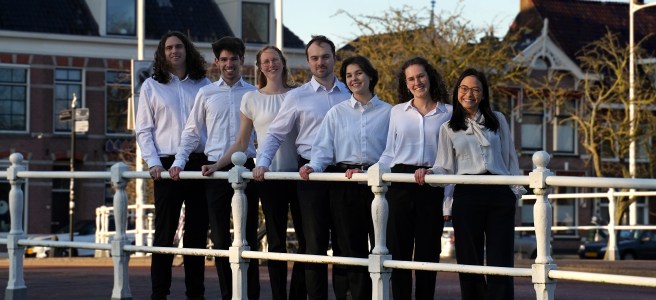 P.S. Deze foto is weliswaar niet in Monnickendam genomen, maar toont onze huidige samenstelling. Recent heeft Björn afscheid van ons genomen om zich te richten op zijn opleiding tot componist. De komende concerten zingen we met z’n zevenen.