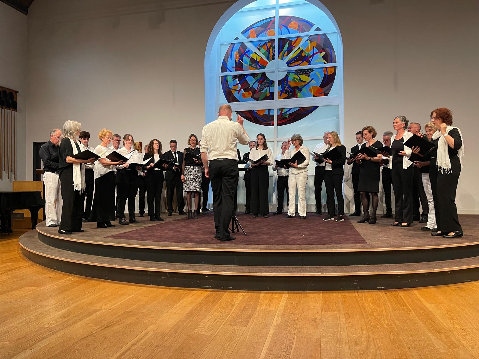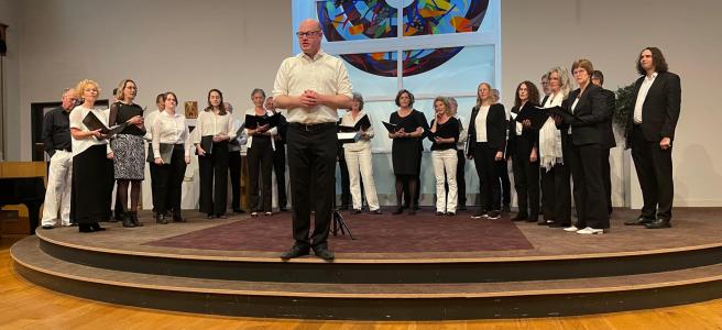 We zijn verheugd dat we aan deze viering konden bijdragen en kijken voldaan terug op de avond. Tevens was dit helaas het laatste optreden met onze hoge sopraan Cรฉcile. Haar heldere hoge noten zullen we missen.