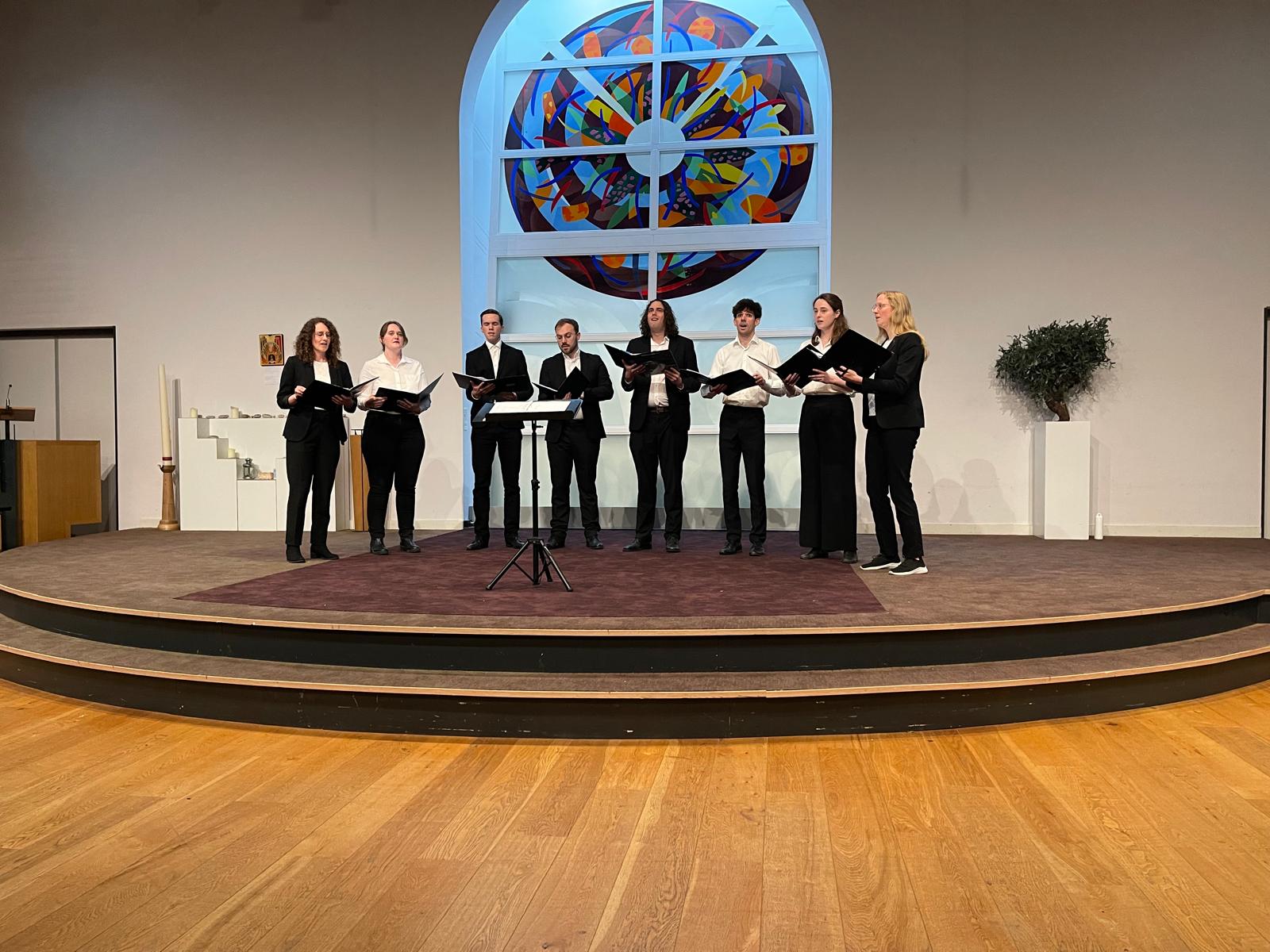 Dit is de eerste keer sinds onze oprichting tot voltallig octet (in 2022) dat we een permanente verandering van bezetting ondergaan, en er liggen verdere veranderingen in het verschiet. Hoe ons ensemble zich de komende tijd zal ontwikkelen, is nog onzeker. Voorlopig richten we ons op de Kerstnachtdienst in Edam en wellicht wat kleine optredens her en der. Houd de website en onze socials in de gaten voor nieuws!