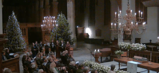 Wat is Kerst zonder muziek en bezinning? OctAves was uitgenodigd om op Kerstavond in de Grote Kerk Edam in de viering te zingen. De kerk was sfeervol versierd met witte rozen, kaarsen en kerstbomen. Tussen de gebeden en lezingen door brachten we vijf Kerstliederen, in drie verschillende talen, ten gehore. De kerkdienst is hier terug te zien.