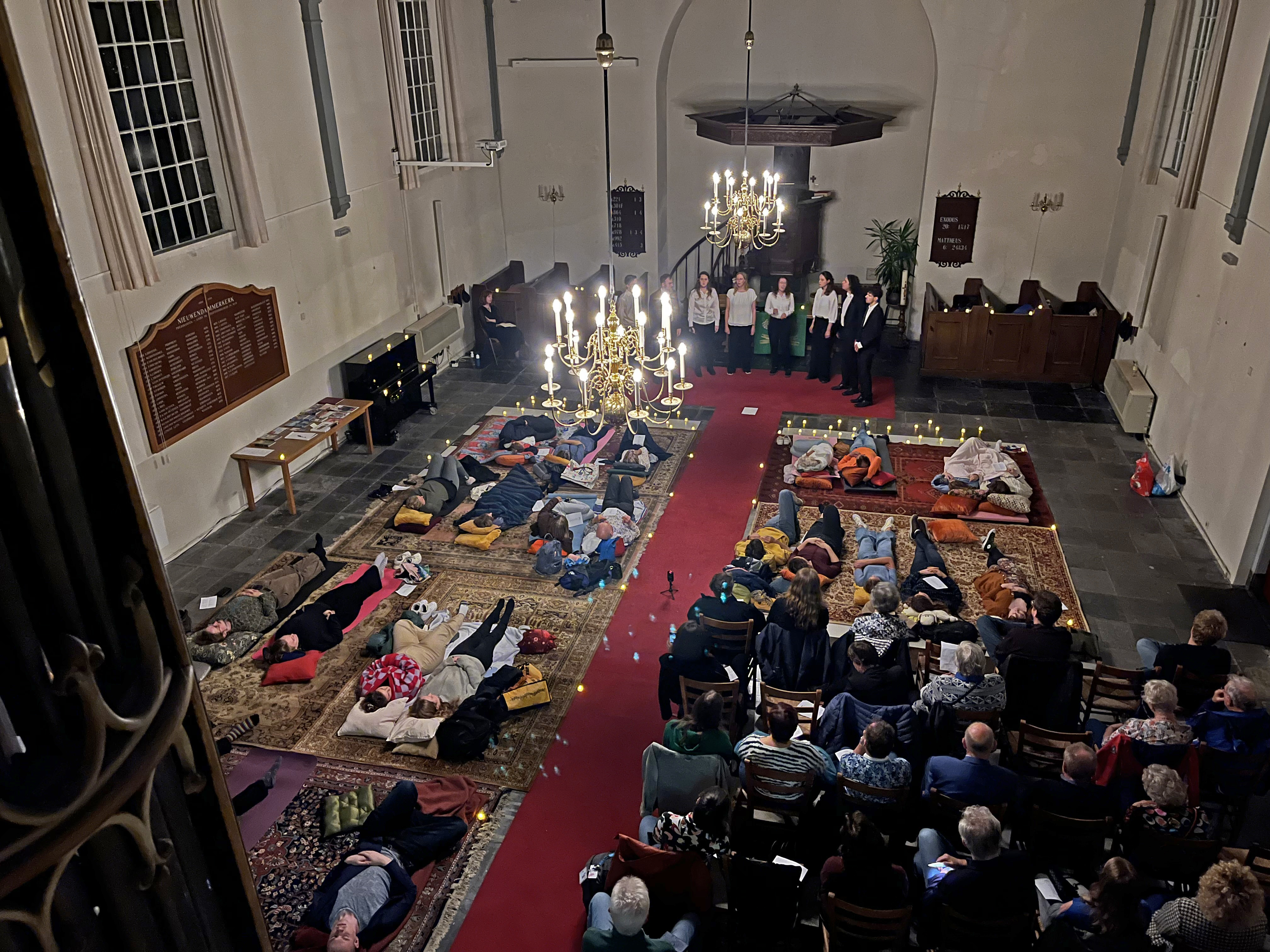 After a successful first round in May, we are thrilled to announce our second lying-down concert on Friday, October 13! This time, we’ll be performing at the Nieuwendammerkerk in Amsterdam-Noord, which offers more space for visitors and is conveniently located at just a 20-minute walk from North Station.