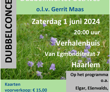 Zaterdag 1 juni 20:00 uur Verhalenhuis, Van Egmondstraat 72024 XL Haarlem Entree* : โฌ 15 in de voorverkoop – โฌ 17,50 aan de zaal Kaarten via www.vocaalensemblekwarts.nl of www.verhalenhuishaarlem.nl *incl. drankje na afloop